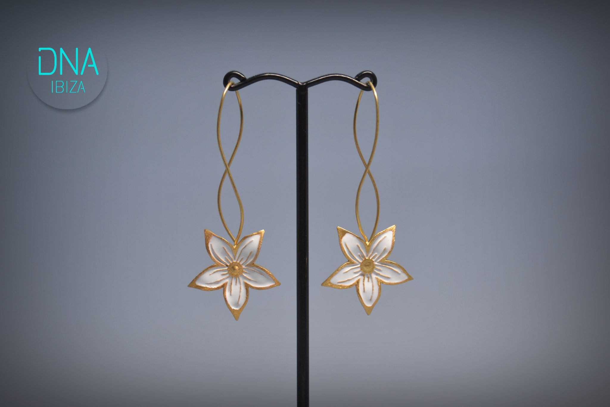 Golden “Blooming Flower” Earrings with Enamel (medium-long)