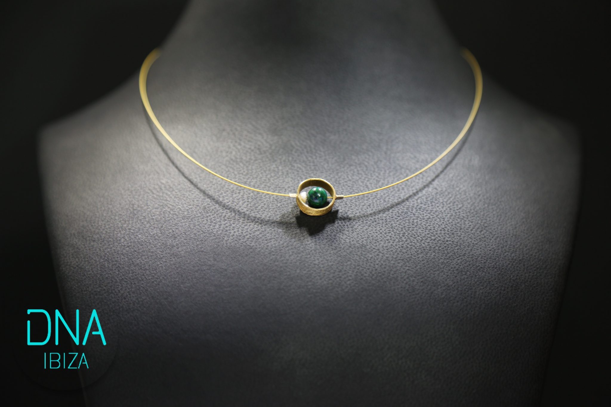 Handmade gold plated silver pendant with chrysocolla and pearl