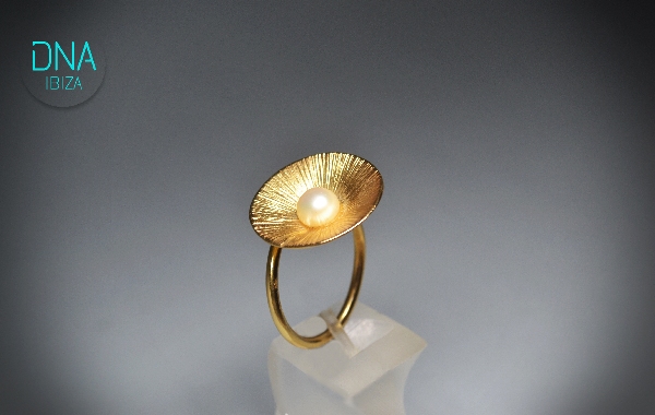 Handmade gold plated silver ring with pearl
