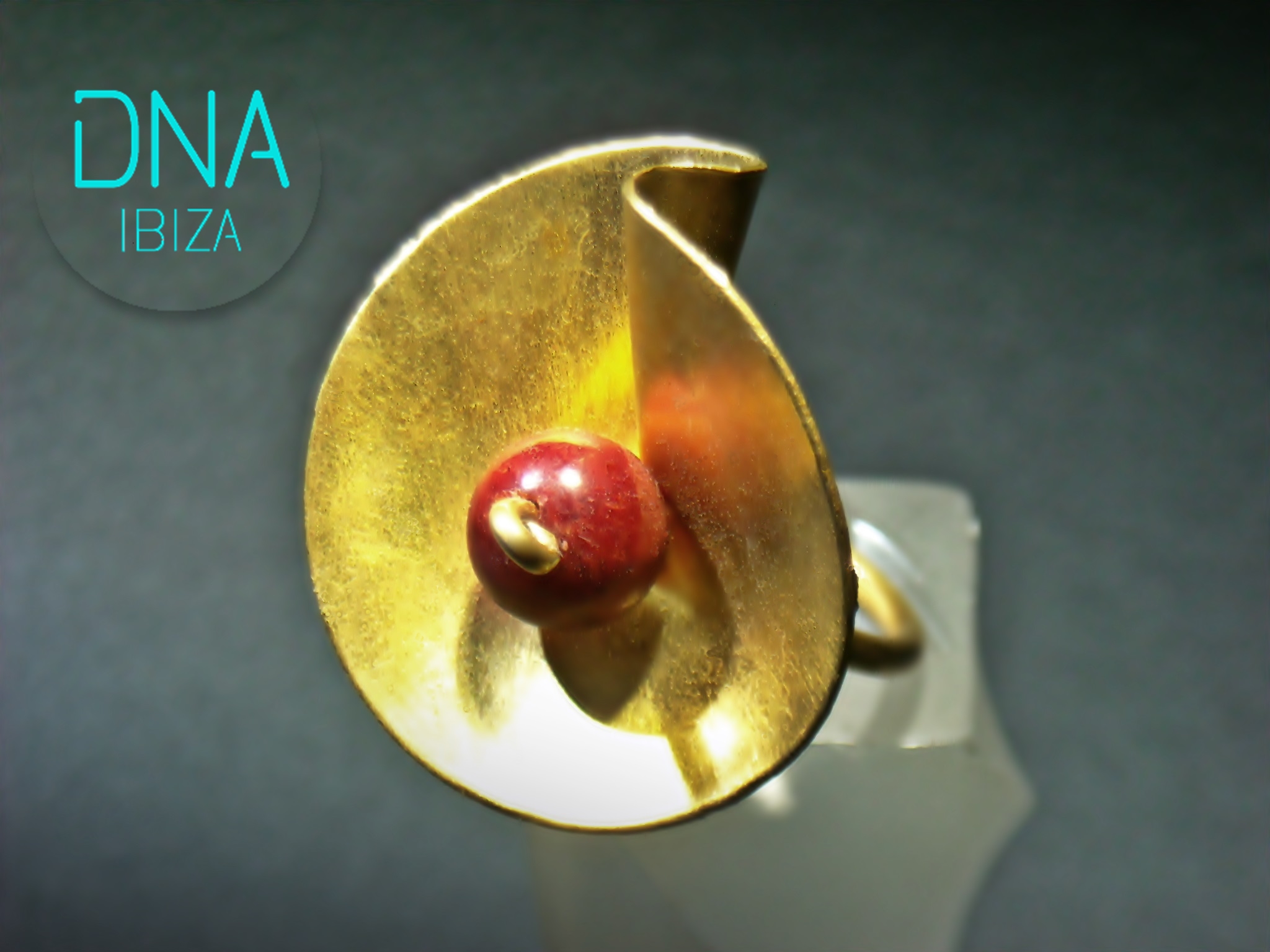 Handmade gold plated silver ring with coral