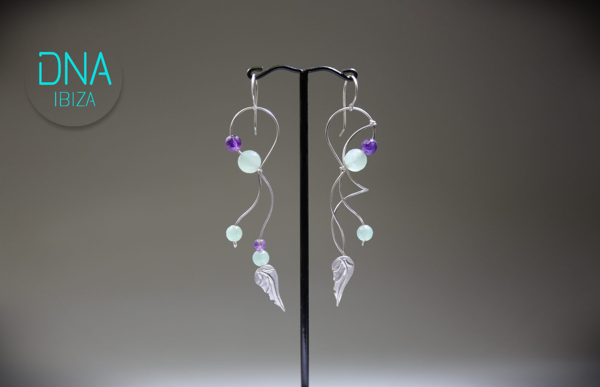 Handmade silver earrings with carnelian, pearl and skoky quartz