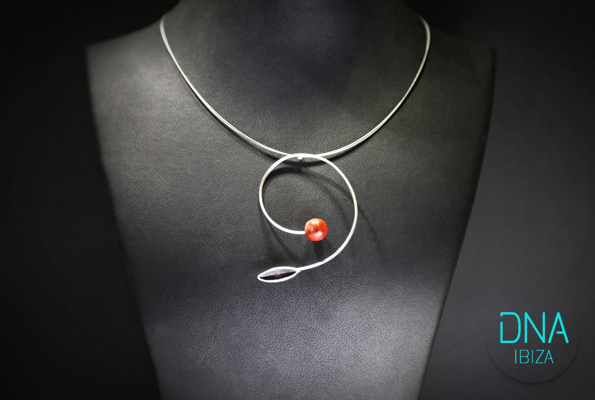 Handmade silver pendant with coral